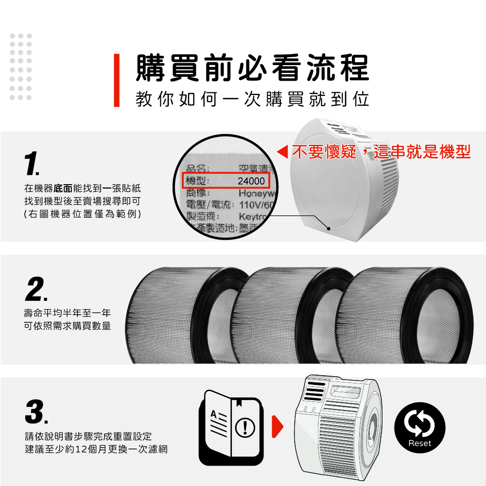 適用型號:Honeywell 大蝸牛機Honeywell 17400Honeywell 18400Honeywell 22500Honeywell 62500對應濾網型號:22500-TWN使用效期:建議至少每6~12個月更換一次濾網注意事項:濾網請勿水洗請依說明書步驟完成重置設定