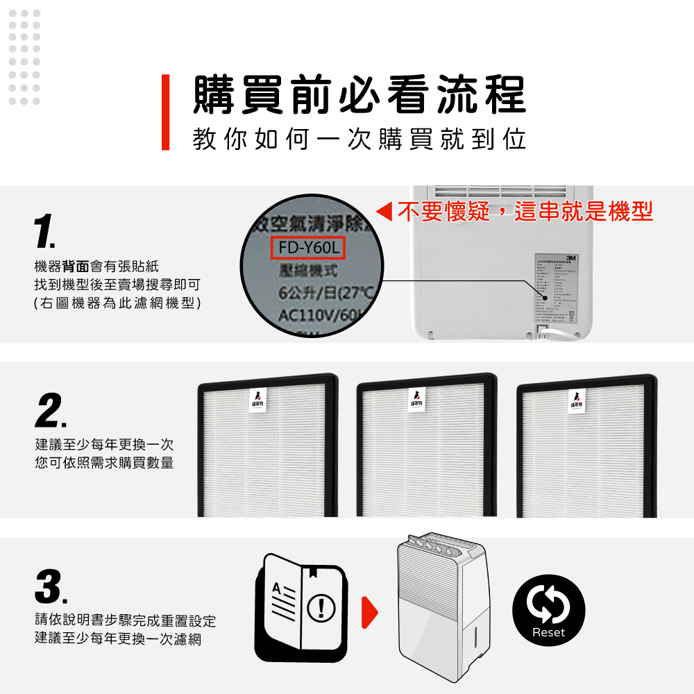 蟎著媽 濾網 適用 3M FD-Y60L 6公升雙效空氣清淨除溼機 濾網 濾芯