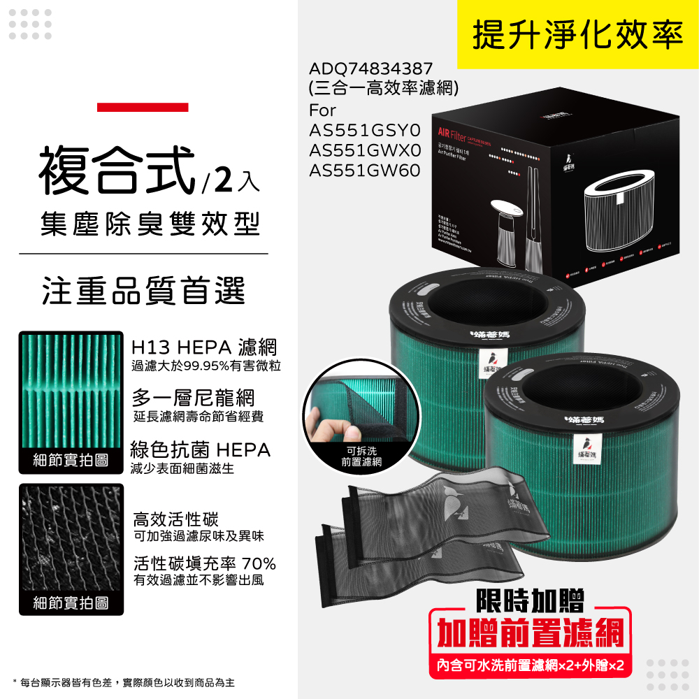 適用 LG 樂金 AS551GSY0 AS551GWX0 AS551GW60 AeroBooster 空氣清淨機 蟎著媽